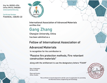 国际先进材料学会(IAAM)是全球先进材料领域权威的国际学术组织,总部位于瑞典。其致力于全世界范围内先进材料科学、工程和技术的快速发展,现已成为材料与工程科学领域杰出科学家的聚集者和领导者。IAAM会士是在全世界范围内评选,授予全球在材料科学、工程和技术领域做出原创性研究的科研人员或科学家。