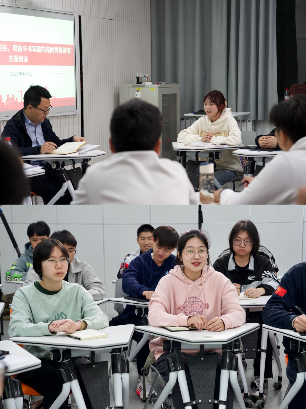 4月6日晚,beat365正版唯一官网必一2020级道路桥梁与渡河工程(国际班)4班在修远3202教室召开“不负时代、挺膺担当,用奋斗书写最闪亮的青春答卷”主题班会。班主任陈志坚讲授“开学第一课”,并与班级同学进行互动交流。辅导员王达、孔令超和班级全体同学参加班会。