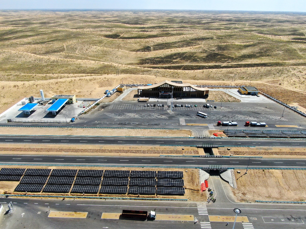 新疆阿乌高速克拉美丽服务区自洽能源系统示范工程是全国首个具备微网互济功能的沙漠高速公路自洽能源系统。该示范工程是包含路域资源禀赋、设施用能自洽率、运营安全保障率、用能保障时间、电动装备渗透率等参数在内的实体工程应用。