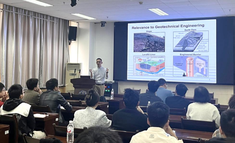 报告会上,赵卜蒂老师详细介绍了X射线断层扫描(X-ray CT)、核磁共振等无损检测方法,通过多次无损扫描观察黏土干燥过程中内部变形和干缩开裂的形成过程。赵卜蒂老师利用黏土内部的气泡/砂颗粒作为标记物,提取标记物的几何参数,并运用基于人工神经网络(ANN)的算法进行标记物追踪,以获得土体内部三维变形。研究结果表明,受到边界限制及表面缺陷的影响,黏土在干缩过程中呈现不均匀变形,导致局部孔隙扩张,从而促进了干缩裂隙的形成与扩展。报告结束后,赵卜蒂老师详细解答了学院师生提出的技术问题,并对水力及力学耦合过程涉及饱和/非饱和土壤内水分运输、吸力诱导的土体变形以及气体入侵等复杂机制等研究方向进行探讨,参会人员纷纷表示收获颇丰。