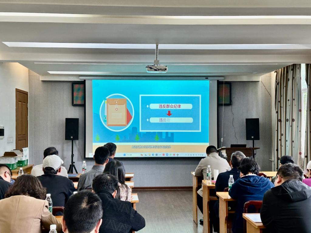 与会人员观看《中国共产党纪律处分条例》解读视频
