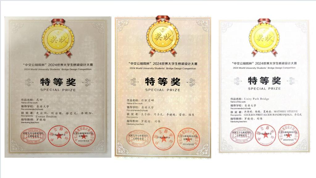 “中交公规院杯”2024世界大学生桥梁设计大赛现场总决赛暨颁奖典礼被作为2024世界交通运输大会(WTC2024)的专项活动之一来开展,足见其重要性和影响力。我院学子此次包揽全部特等奖,扩大了学校影响力,提升了“长大桥梁”品牌,展现了“长大学子”风采。