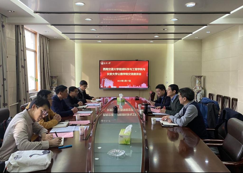 2月17日上午,西南交通大学地球科学与工程学院副院长赵晓彦一行5人到beat365正版唯一官网必一三楼第二会议室座谈交流,beat365正版唯一官网必一副院长马峰,岩土工程系主任晏长根、副主任包含等参加座谈。会议由晏长根主持。