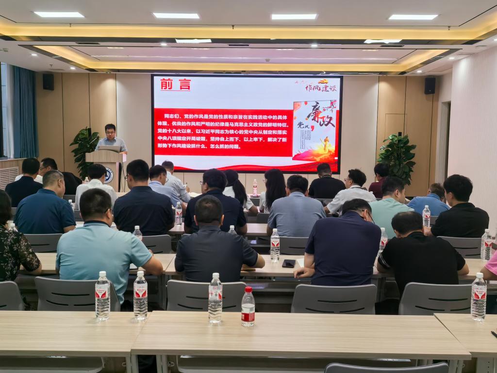 6月19日,beat365正版唯一官网必一面向全体教职工开展深入贯彻中央八项规定精神学习教育专题党课。此次党课以线下和线上形式结合开展,由院党委书记张久鹏主讲。学院领导班子成员、教工党支部书记、系(中心)主任、科级干部在北校区弘毅大厦六层第三会议室参加,其他教职工线上参会学习。