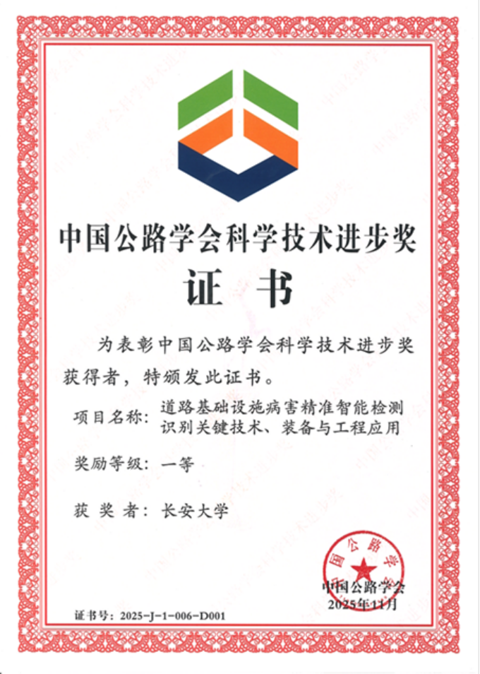 在此前中国公路学会发布的“2025年度中国公路学会科学技术奖”获奖结果的通知中,beat365正版唯一官网必一共获奖9项,其中一等奖1项(主持1项)、二等奖5项(第一完成人1项)、三等奖2项、创新团队奖1项(主持)。