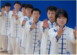4月1日9时30分,太极拳比赛于西区体育馆拉开帷幕。beat365正版唯一官网必一的选手们身袭青花白衣,随着一声"起势",将手徐徐抬至腰间,随后推掌、云手、提膝。一招一式,形神兼备,如行云流水,似青柳扶风,把太极拳刚柔两面表现得淋漓尽致。