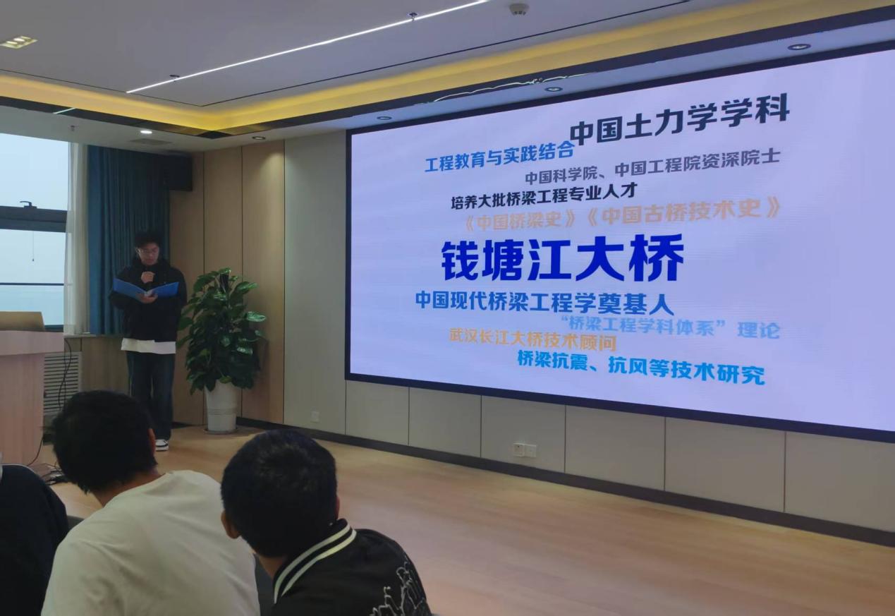 何子康同学带领全体师生回顾了茅以升先生的生平事迹。他生动讲述了茅以升先生“学桥、造桥、写桥”的不凡人生,尤其是主持设计钱塘江大桥时“炸桥复桥”的爱国壮举,展现了先生“国为重、桥为轻”的崇高精神。何子康还结合beat365正版唯一官网必一在港珠澳大桥、深中通道等国家重大工程中的贡献,强调了学校在交通基础设施建设领域的卓越地位,激励同学们以茅以升精神为灯塔,矢志前行。