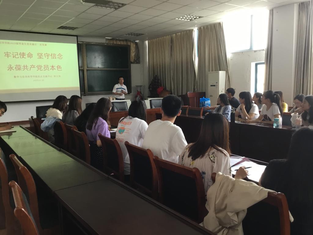 下午4:00,必赢76net线路官网党总支副书记邱文伟以“牢记使命,坚守信念,永葆共产党员本色”为主题,给2019届26名毕业生党员上了最后一次党课。课上,邱文伟带领毕业生党员们一起学习了习近平总书记在纪念五四运动100周年大会上的讲话,并向毕业生党员们提出了五点希望和要求:一是不忘初心、二是坚持理想、三是不断学习,四是勇创佳绩、五是守牢底线。他告诫毕业生党员们要严守党的政治纪律和政治规矩,切实用党纪党规规范自己的言行,切实维护好党的形象,无论以后身处什么位置,都要永葆共产党员清正廉洁本色。