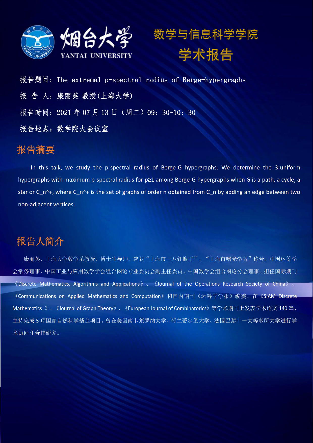 学术报告-康丽英 教授(上海大学)