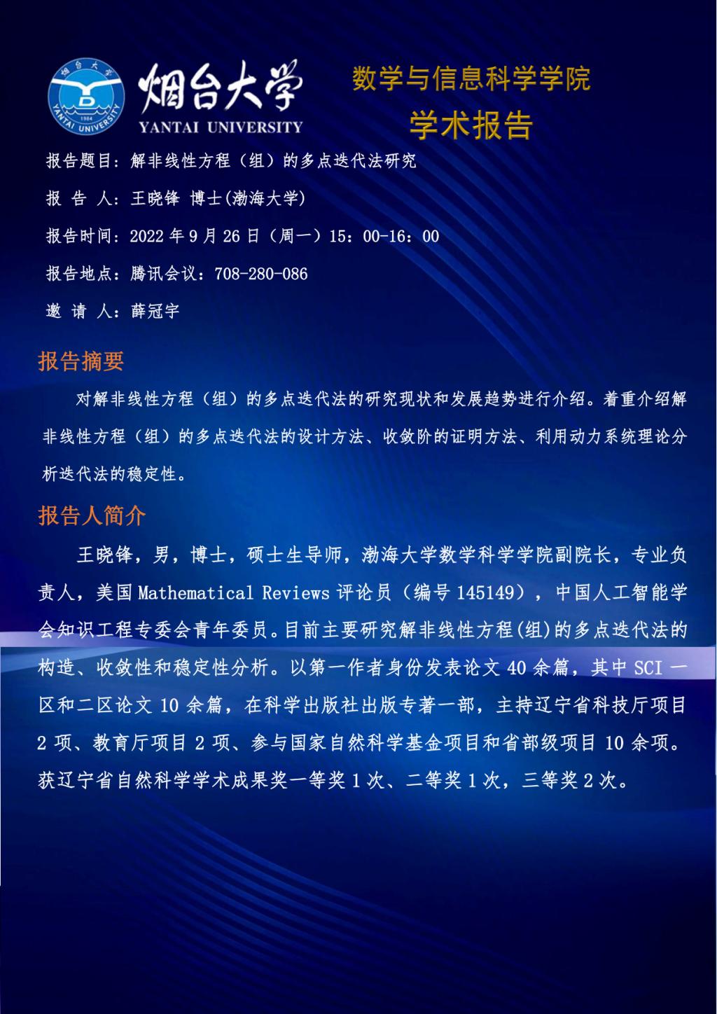 学术报告--王晓锋 博士(渤海大学)
