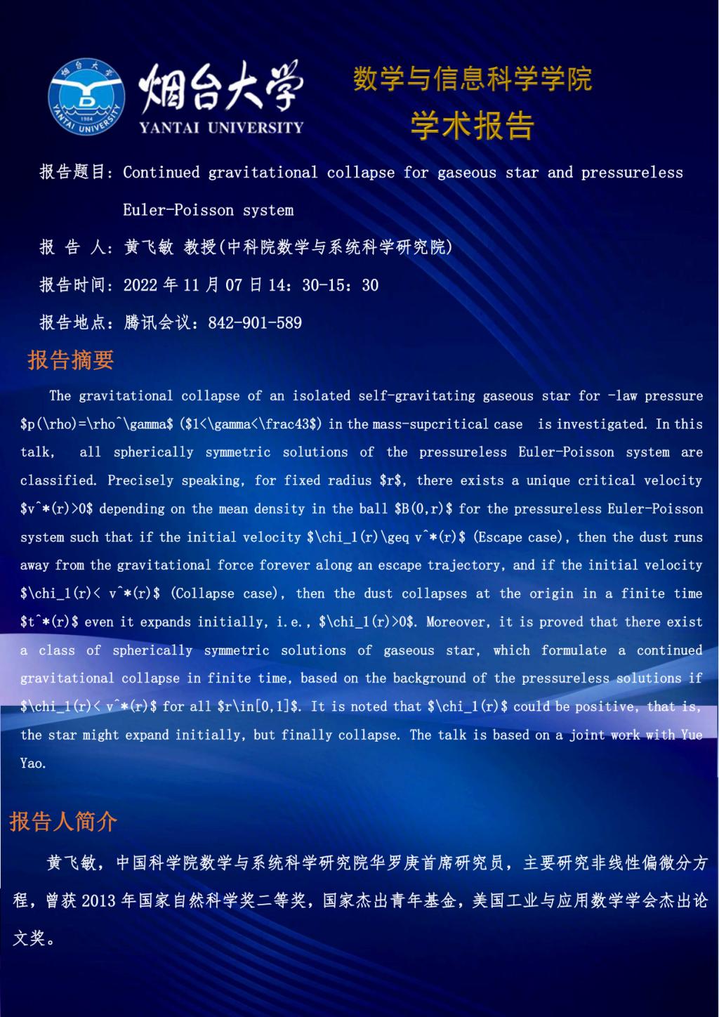 学术报告--黄飞敏 教授(中科院数学与系统科学研究院)