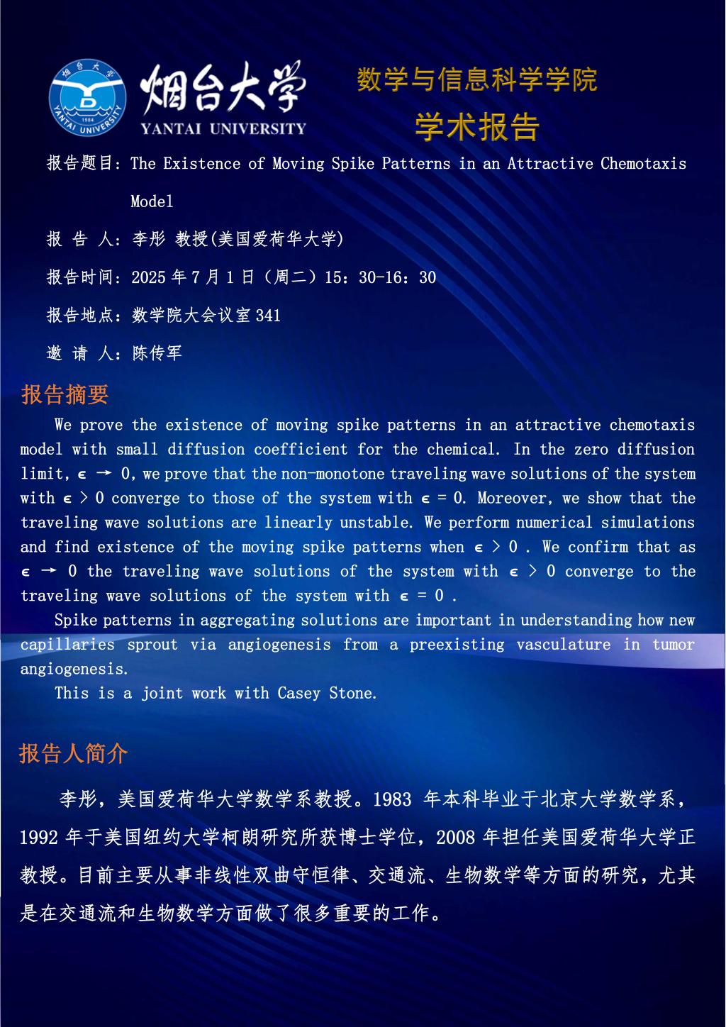 学术报告—李彤 教授(美国爱荷华大学)—20250701