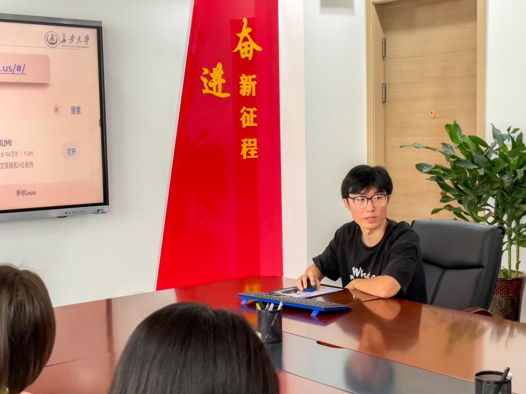 李存兴从新闻写作要求、微信推文制作方式和投稿推送流程三方面展开讲解。为帮助各队宣传员更好地了解秀米使用流程,他以一篇文稿为例在电脑上进行排版演示,详细讲解文字格式,图片格式、模板设置的具体操作。并表示学院青年传媒中心会秉持公平公正原则,严格审核各队伍的推文质量。