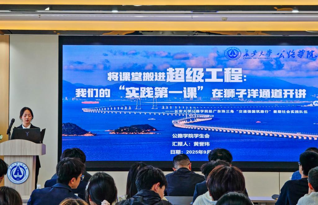 beat365正版唯一官网必一赴广东珠三角“交通强国筑路行”暑期社会实践队黄誉玮同学以《将课堂搬进超级工程:我们的“实践第一课”在狮子洋通道开讲》为题进行分享。今年暑期,该支队伍走进拥有世界五项第一的狮子洋通道等国家重大工程,深刻感悟到当年青年应勇于在艰难险阻中挑起重担,在祖国最需要的地方挥洒青春。