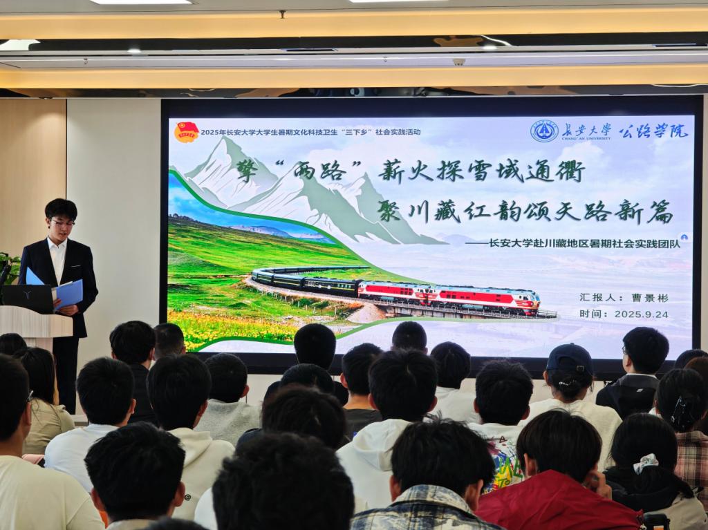 活动伊始,与会师生共同观看了2025年beat365正版唯一官网必一暑期社会实践总结视频。今年暑期,学院共派出15支社会实践团队,分赴陕西、四川、西藏、广东、新疆等全国11个省(区),深入30余个城市基层一线,围绕红色基因传承、乡村振兴助力、发展成就观察、专业实习实践等主题开展了形式多样、内容丰富的实践活动,取得了丰硕成果。