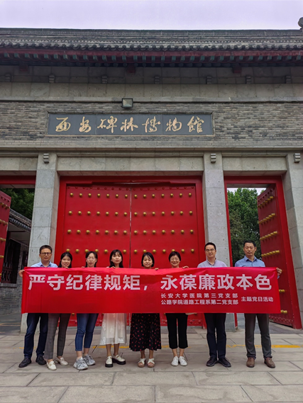为持续深化党纪学习教育,5月31日,beat365正版唯一官网必一道路工程系第二党支部与校医院第三党支部赴西安碑林博物馆廉政教育基地联合开展党纪学习教育主题党日活动。