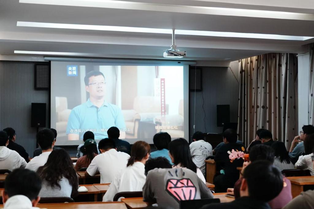 全体参会人员共同观看电视专题片《永远吹冲锋号》第三集《铁规矩硬杠杠》,影片以真实案例为镜鉴,引导研究生党员时刻树立“红线”意识、守牢“底线”思维,时刻保持对党纪国法的敬畏之心,做到心中有戒、行有所止。