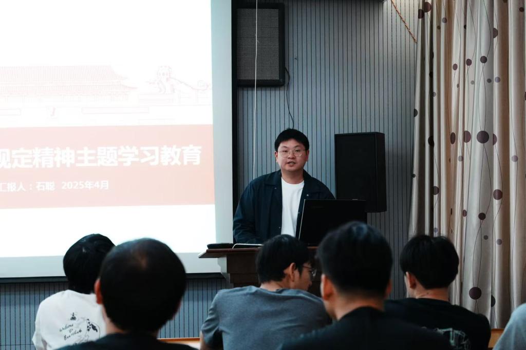 研究生辅导员石聪开展了深入贯彻中央八项规定精神学习教育。石聪对“中央八项规定精神”的核心要义和实践要求进行了系统全面、深入浅出的介绍,他强调广大党员必须锲而不舍落实中央八项规定精神、持续深化纠治“四风”、严格遵守党章党纪、主动接受群众监督,不断推动学习教育走深走实、见行见效。